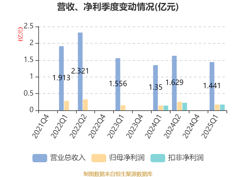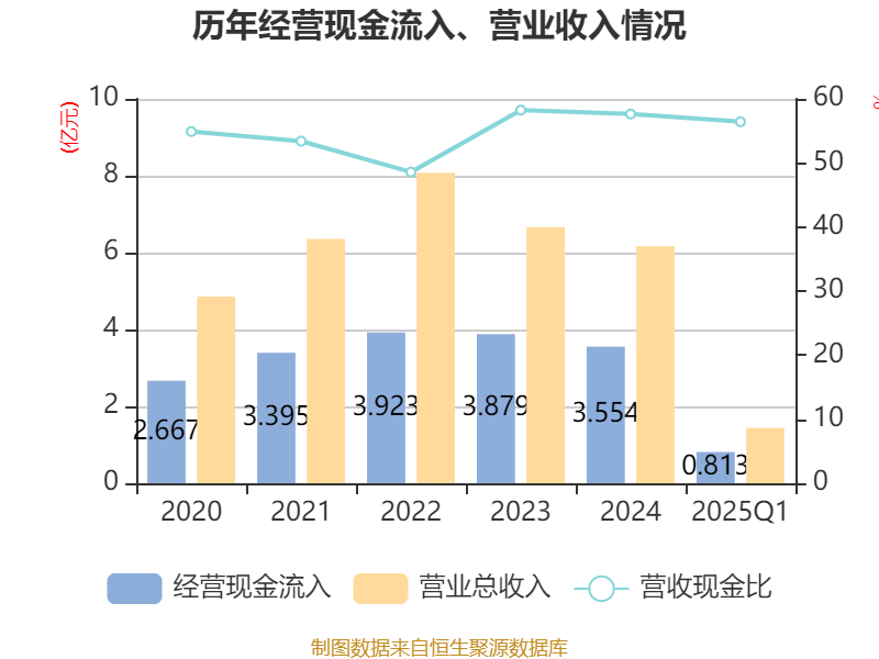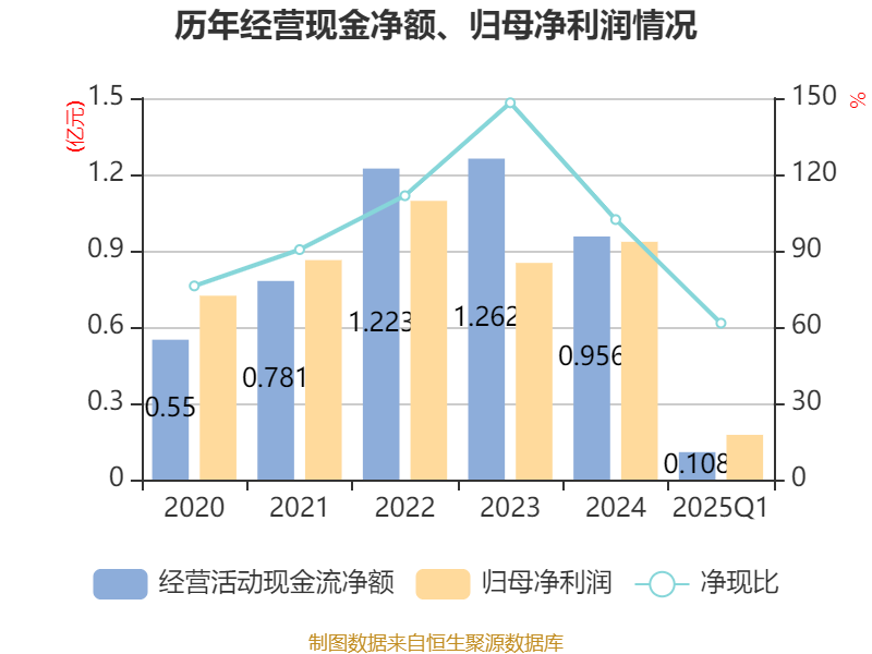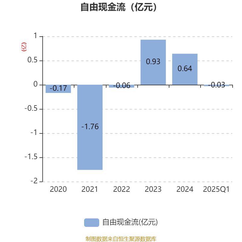 截至2025年一季度末,公司经营活动现金流净额为1079.97万元,同比增长76.44%;筹资活动现金流净额-69.06万元,同比减少36.04万元;投资活动现金流净额-372.17万元,上年同期为-130.57万元。