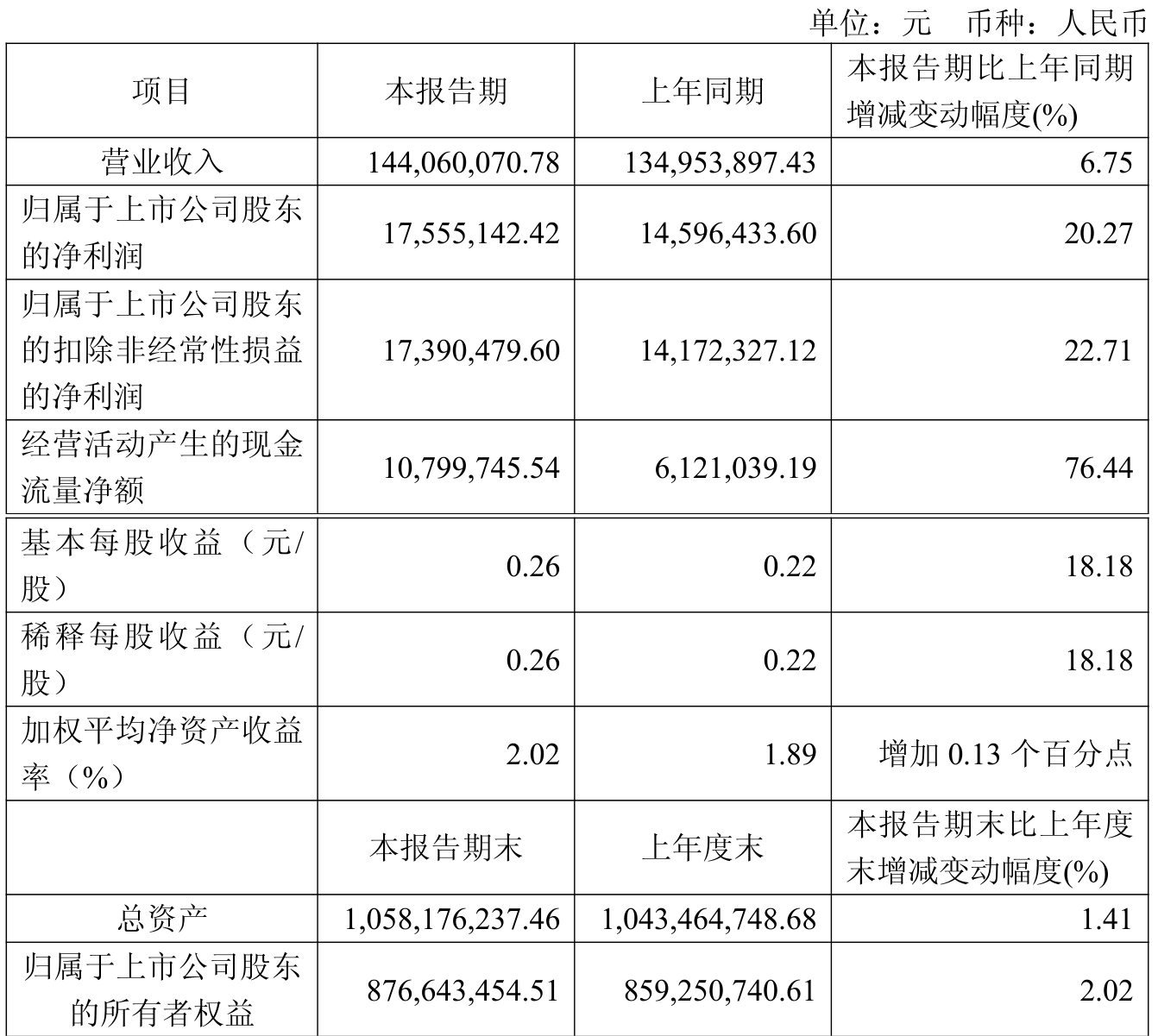 中证智能财讯肯特催化(603120)4月29日披露2025年第一季度报告。公司实现营业总收入1.44亿元,同比增长6.75%;归母净利润1755.51万元,同比增长20.27%;扣非净利润1739.05万元,同比增长22.71%;经营活动产生的现金流量净额为1079.97万元,同比增长76.44%;报告期内,肯特催化基本每股收益为0.26元,加权平均净资产收益率为2.02%。