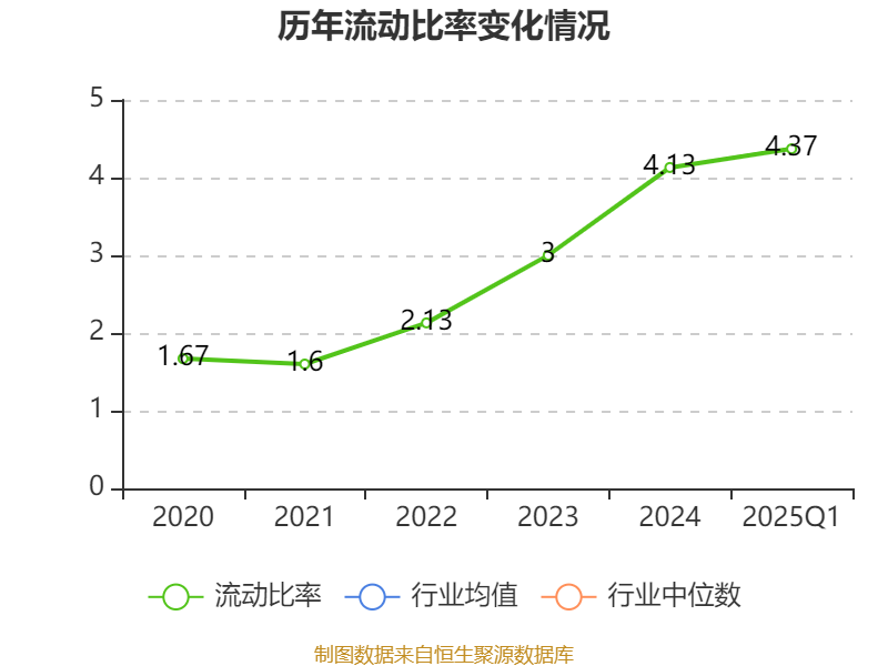 2025年第一季度,公司流动比率为4.37,速动比率为3.84。