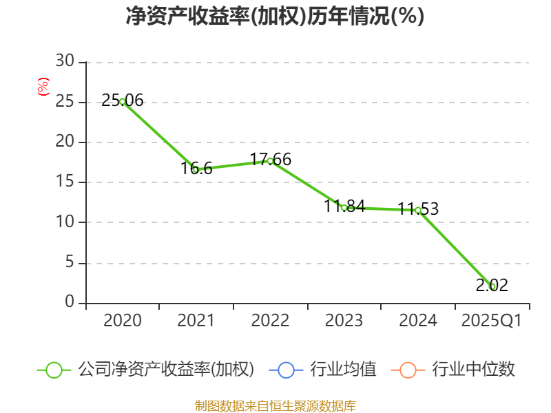 盈利能力方面, 2025年一季度公司加权平均净资产收益率为2.02%,同比上升0.13个百分点。公司2025年第一季度投入资本回报率为2%,较上年同期下降1.7个百分点。
